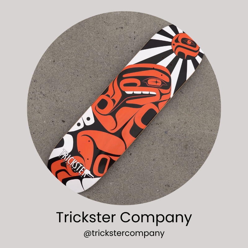 Trickster Company is run by a brother and sister team of artists. They started out designing skateboards and sporting equipment and have now expanded to offering clothing, jewelry, fine art, and home and paper goods. They work with the intention of promoting diversity within the community, seeking to make items with “which modern indigenous people can represent their heritage, create products that non-native people can wear and appreciate without appropriating via cultural exchange, and to represent modern indigenous lifestyle to a broader audience.”